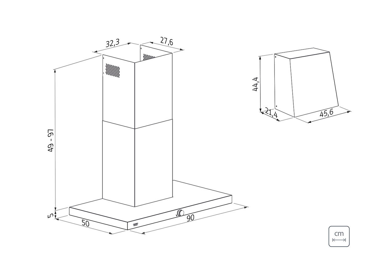 - 2 chaminés, inferior e superior, com 50 cm cada.