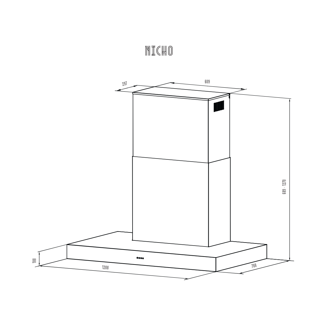 | Medidas do Produto Coifa | Largura: 120 cm, Altura: 120 cm, Profundidade: 70 cm, Peso: 41 kg, Voltagem: 220 V |