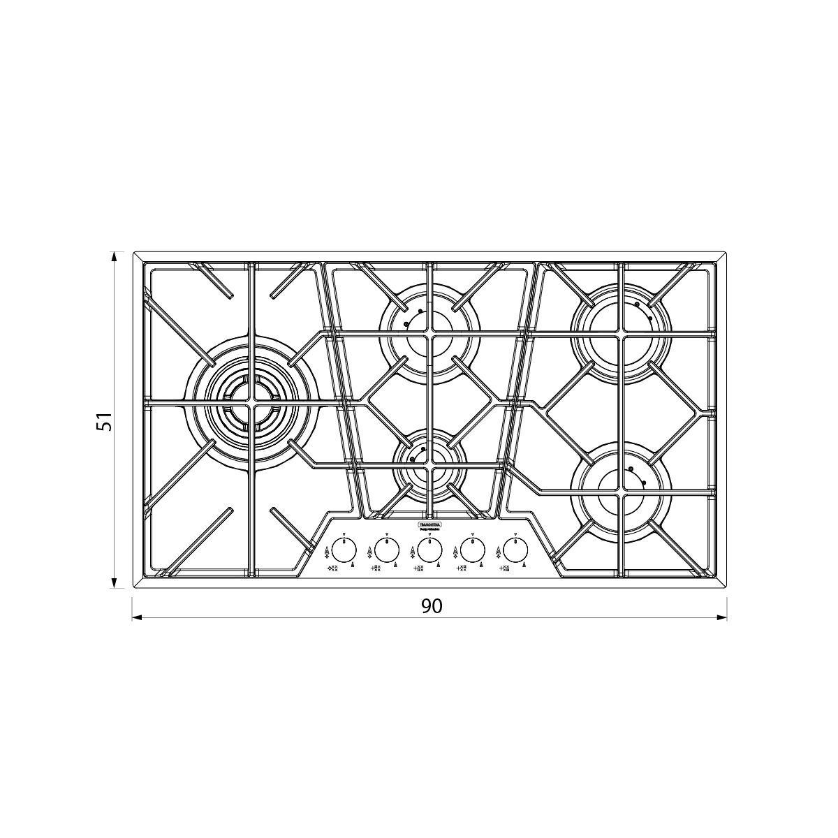 Cooktop a Gás Tramontina Penta Full Glass Black Series 5GG B 90 em Ferro Fundido Preto Fosco