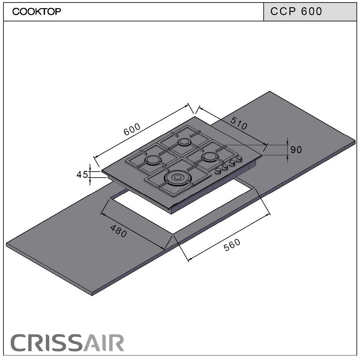 O cooktop italiano modelo CCP 600 da "Crissair" traz o que há de melhor para a sua cozinha. Com design sofisticado e queimadores SABAF, este modelo garante eficiência e segurança. Desfrute de uma experiência culinária superior com o toque de elegância do aço inox 304.