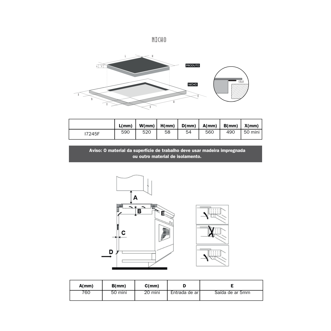 | Material do Plano de trabalho | Placa vitrocerâmica |