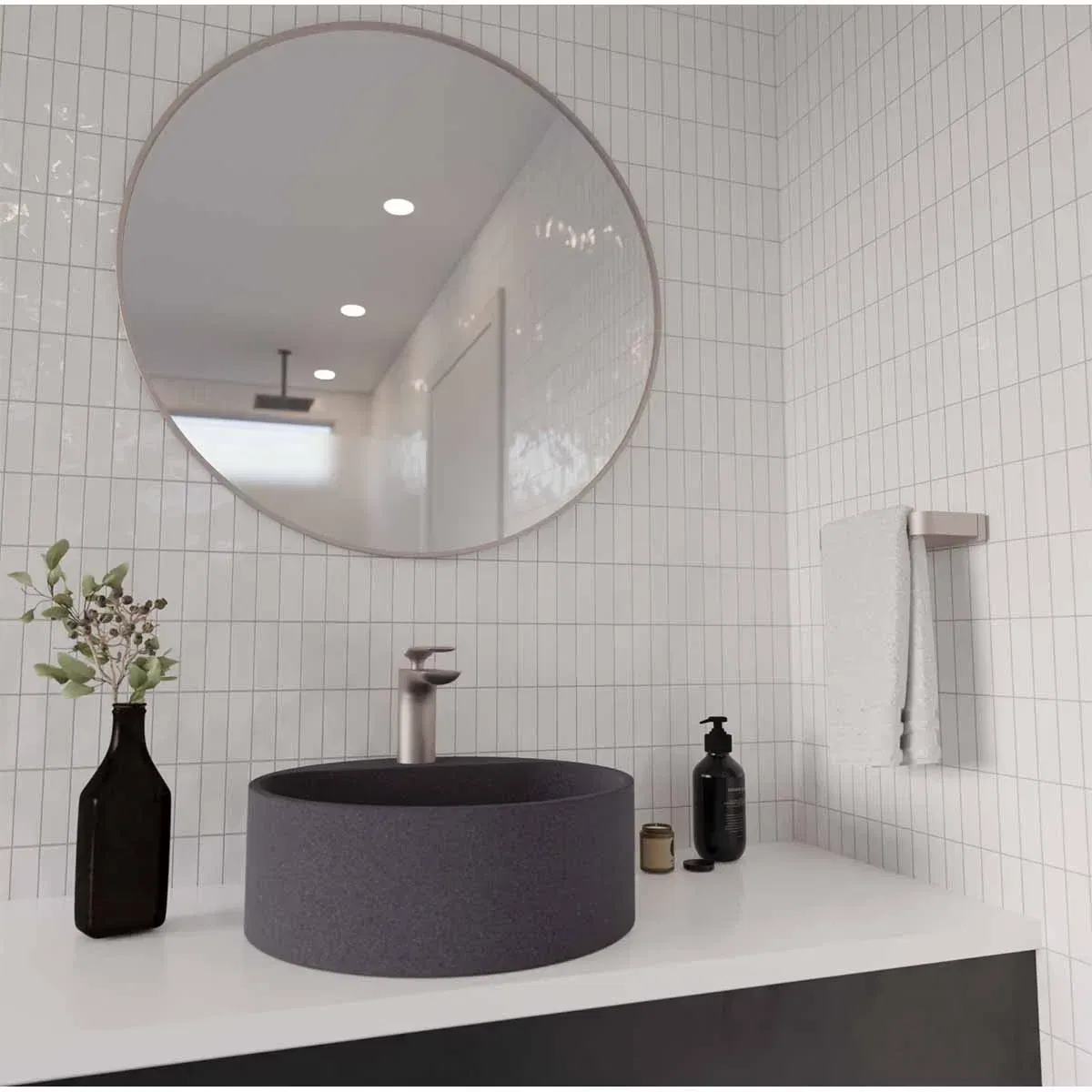 Esbanjando sofisticação, a Cuba de Apoio Redonda com Mesa GeoStone foi criada para compor ambientes modernos e requintados. Com um design contemporâneo com linhas delicadas traz inovação e praticidade em uma única peça.  A Cuba de Apoio Redonda com Mesa Dark Red Terrazzo, é produzida no material exclusivo DOKA, GeoStone, e possui acabamento em terrazzo. A peça possui garantia de 5 anos. Referência: DK5051DR