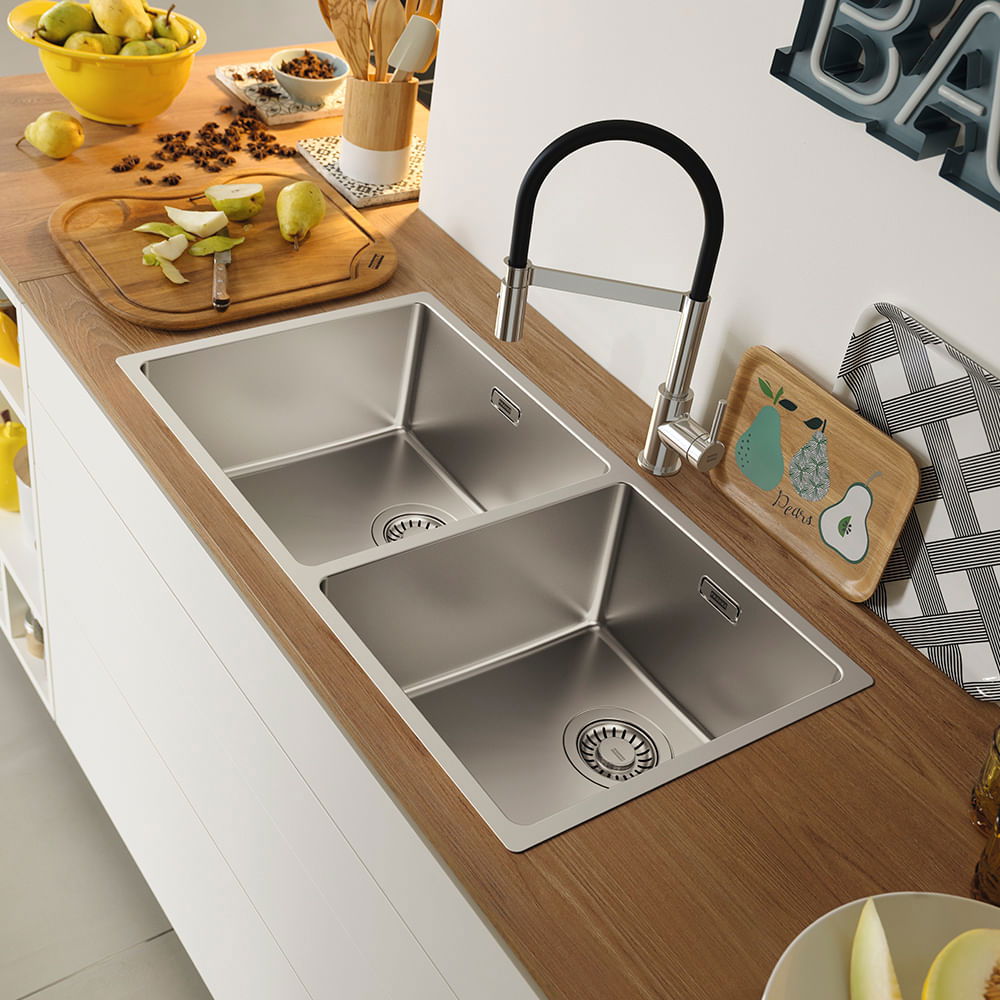 Descubra a elegância das cubas em aço inox da "Franke". Os cantos retos da nova linha Línea oferecem um toque moderno e imponente para qualquer cozinha.