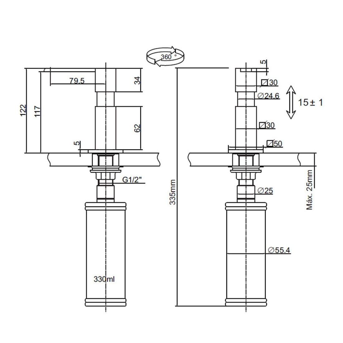 - Versatilidade de uso: Perfeito para cozinhas e lavabos, substituindo saboneteiras convencionais com estilo.