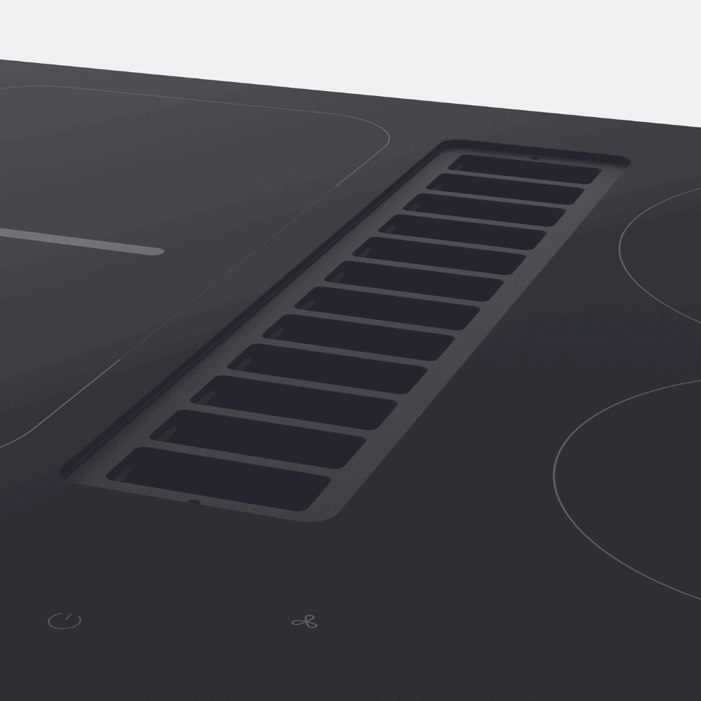 - Ativação automática da coifa: Ajuste automático de velocidade conforme a potência do cooktop.