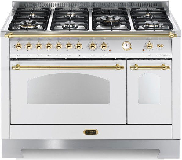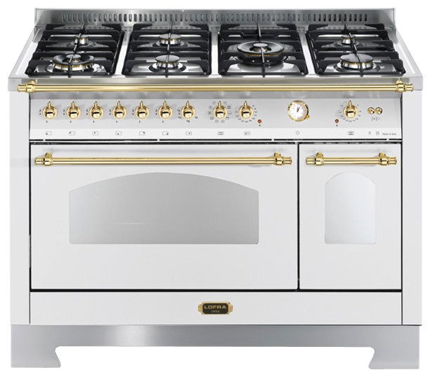 O design vintage da "Lofra" em branco perolizado e detalhes em latão é uma combinação de robustez e elegância. Embutível, adapta-se facilmente em qualquer espaço, com manípulos e puxadores em latão maciço para durabilidade e estilo.