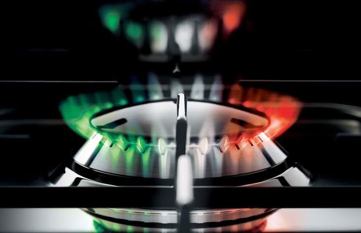 - Queimadores Profissionais Sabaf Serie III: Eficiência elevada e baixas emissões com chamas inclinadas para cozimento rápido.