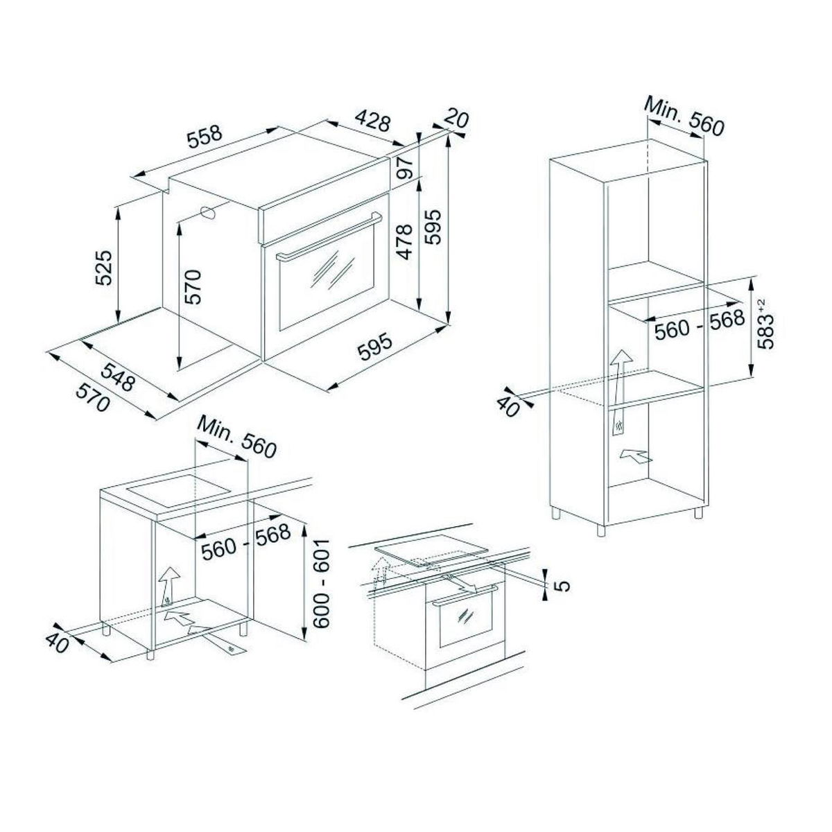 | Nicho de Instalação | Largura: 560-568mm x Altura: 583mm x Profundidade mínima: 560mm |