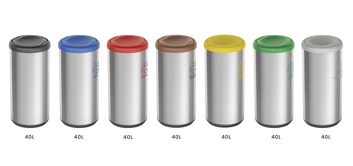 - Material: Aço inox com acabamento Scotch Brite e tampa em polipropileno