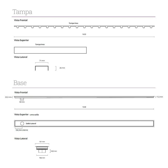 | Base | Altura reduzida (permite a instalação no contrapiso) |